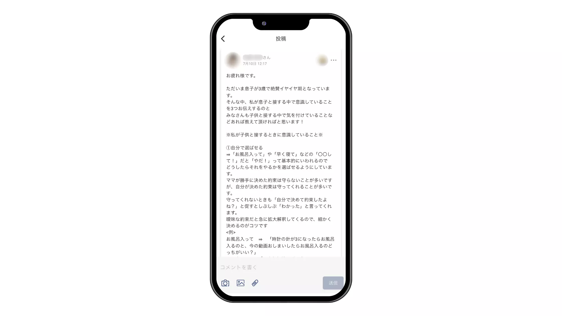 当社は女性比率が約65%かつ育児中の方も多いため、子育ての悩み相談のできるスレッドもあります。以前、「子どもが熱を出した」という投稿に「仕事は私たちがやるから、早く迎えに行ってあげて」などのコメントが寄せられているのを見たときは、心が温まりましたね。
