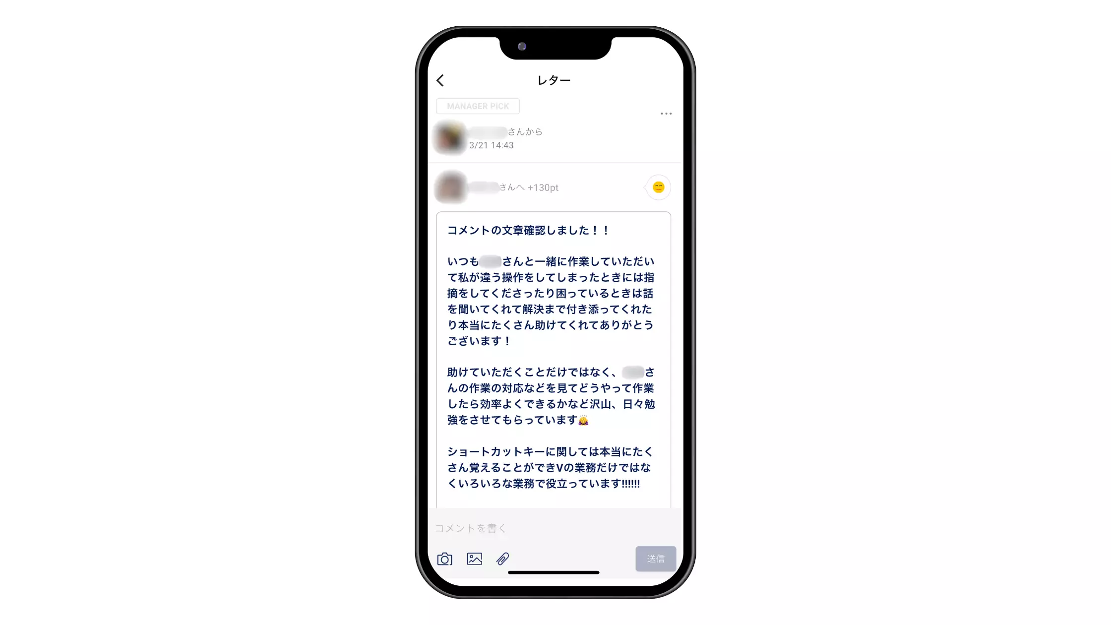 口頭でのお礼は簡素になりがちですが、レターだと「相手のどのような行動が嬉しかったのか」「そのとき自分がどう感じたか」と深い内容の感謝を伝えられます。そのため、レターを通じて従業員の捉え方や感じ方を理解できるのは嬉しいですね。実は、レターを見て「この人の意見を聞いてみたい」と思い、社長室に来てもらい話す時間を設けたこともあります