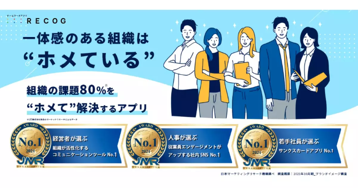 管理職の業務負荷を軽減し、チームのパフォーマンスを最大化するためには、適切なツールの導入も有効な手段です。なかでも、チームワークアプリ「RECOG」は、管理職が抱える組織課題の解決に役立つ機能を多数備えています。